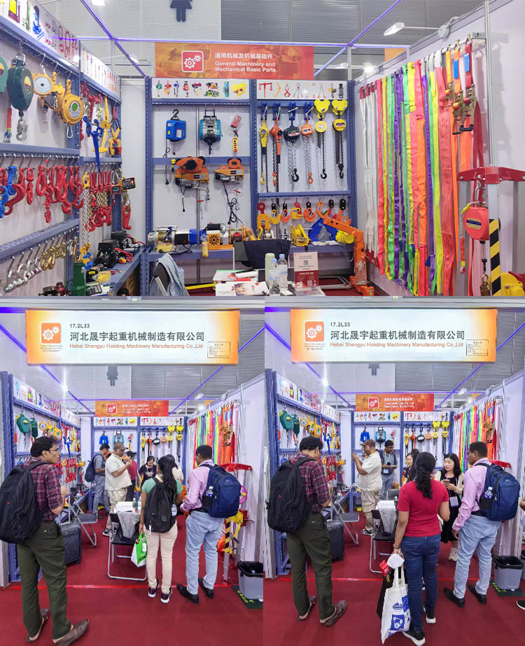 Tällä Canton -messuilla Shengyu esitteli pääasiassa sähköä nostimia, käsiketjunostimia, nostolihnoja ja asusteita, nostolihnoja ja muita nostolaitteita. Se tarjosi myös yksityiskohtaisia selityksiä ja esittelyjä asiakkaille, jotka tulivat neuvottelemaan, jolloin heillä oli intuitiivisempi käsitys tuotteen vahvuudesta. Tekninen ryhmä vastasi myös paikalla oleviin kysymyksiin laitteiden valinnasta myynnin jälkeiseen tukeen. Tämä Kanton-messut eivät vain tarkistaneet teknistä reittiä ja markkinoiden strategiaamme, vaan myös vahvistivat luottamustamme kansainvälisten markkinoiden syvästi viljelyyn, ja on sitoutunut tarjoamaan tehokkaampia ja turvallisempia nostamisratkaisuja globaaleille asiakkaille